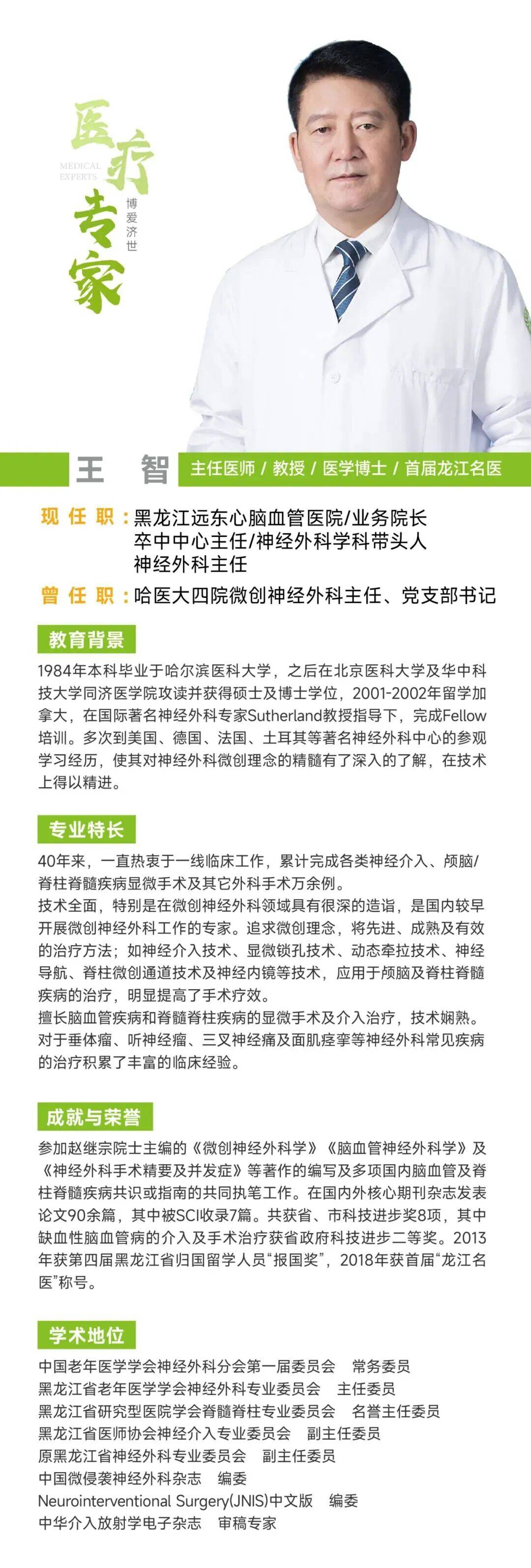 就在王先生一筹莫展时,他想起了过往的一段经历——十年前因腰椎侧弯,他曾接受过黑龙江远东心脑血管医院院长、神经外科学科带头人、主任王智教授(原哈医大四院微创神经外科主任、首届龙江名医)的手术,术后效果格外理想,多年来腰部一直安稳无恙。凭借对王智院长医术的信任,王先生没有犹豫,立刻前往医院寻求帮助。