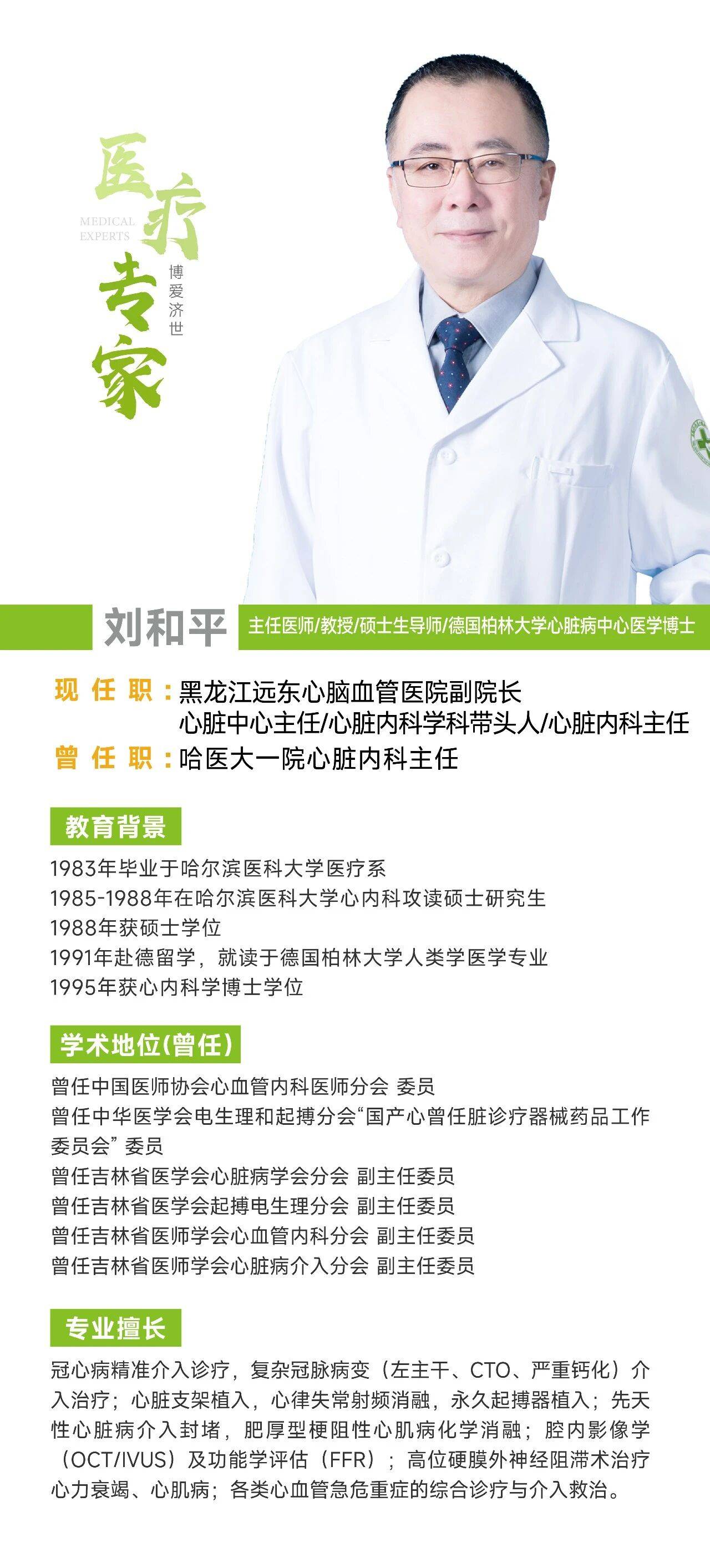 原哈医大一院心脏内科主任,现黑龙江远东心脑血管医院心脏内科带头人、主任 刘和平教授特别提醒:健康不能等一等,如果心脏微循环出现问题不及时干预,就会引发更加严重的心血管疾病,如:心绞痛、心肌梗死、恶性心律失常等,最终导致心源性猝死的出现!